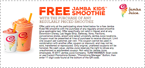 Requires a purchase of a regularly priced smoothie, meh… decent deal, I guess. The Jamba Kids retail for about $3. You be the judge.